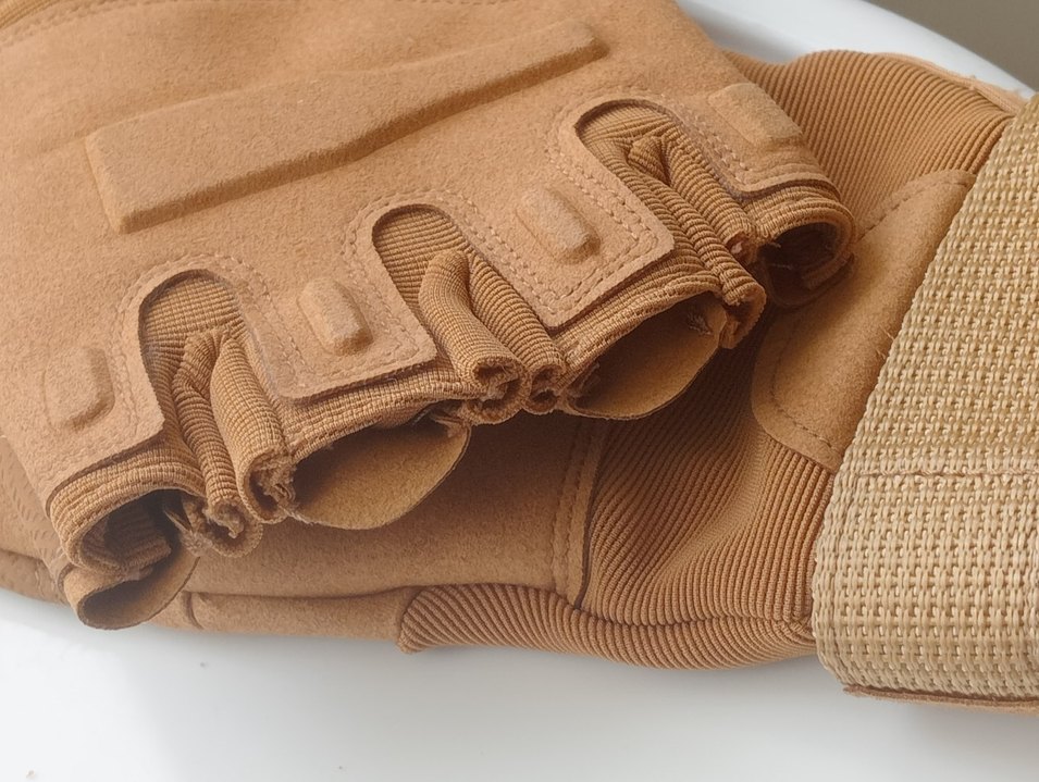 Bej parlak renkte, street wear tarzında erkek eldiveni. Athleisure stilini yansıtan, desen içermeyen ve modaya uygun, avant-garde görünüme sahip eldivenler.