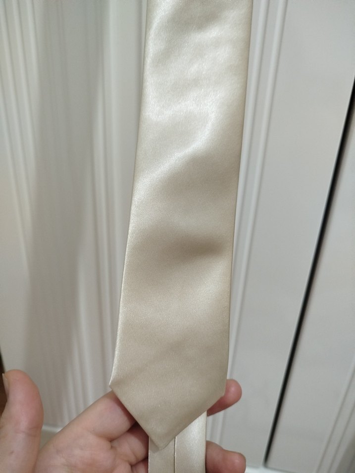 Parlak bej renkte, düz dokulu erkek kravat, klasik ve modern tarzı bir araya getirir.
