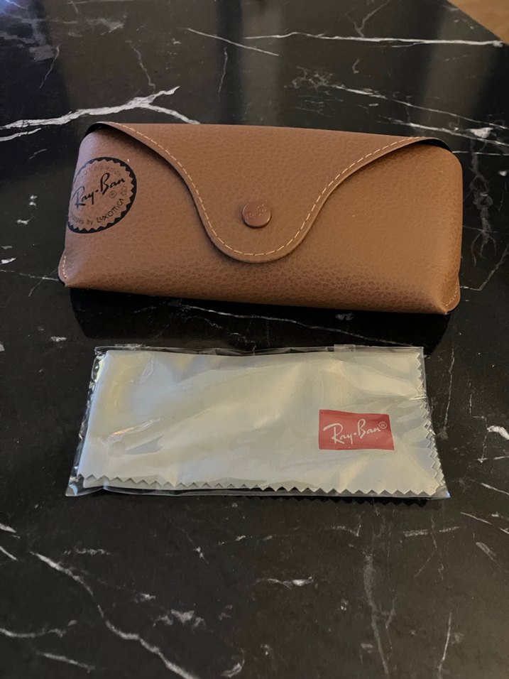 Bej parlak fermuarlı kadın gözlük kabı, klasik tarzda. Ray-Ban markalı temizleme bezi ile birlikte. ️