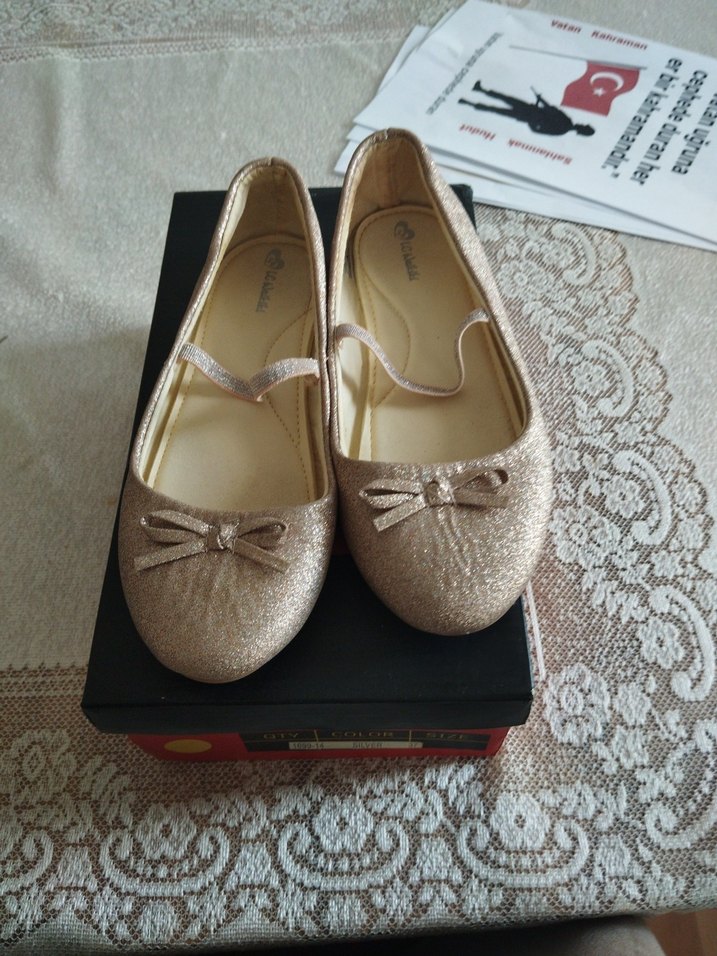 Bej parlak kız babetleri, fiyonk detaylı ve yumuşak lastik tabanlı, modern klasik tarzda rahatlık sunar.