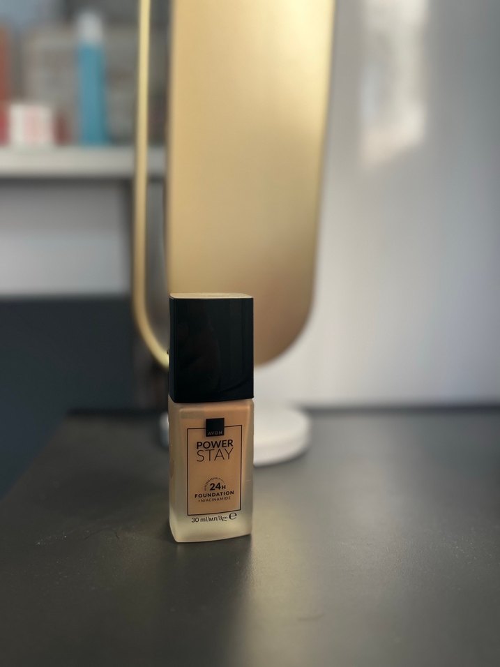 Parlak bitişli bej fondöten, 24 saat kalıcı kapatıcılık sağlar. Üzerinde "STAY" yazısı bulunur.