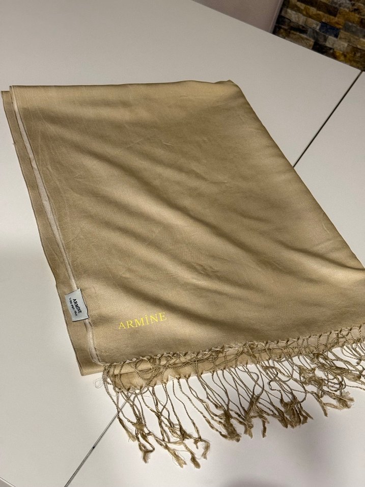 Bej Parlak Kadın Saten Şal armine