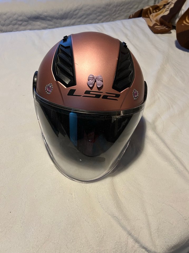 Bej parlak LS2 motosiklet kaskı camında cok kücük cizik var