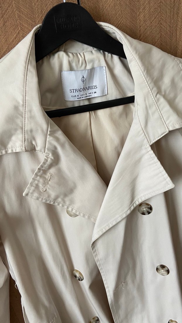 Bej renkli, parlak saten kumaştan midi uzunlukta trençkot. Notlu yaka ve düğmeli ön detaylara sahiptir. Askılı kollu, klasik ve günlük stil için uygundur. Marka: STRADIVARIUS. 160 boyundayım diz kapaklarıma geliyor yeniden farksız çok az giyildi