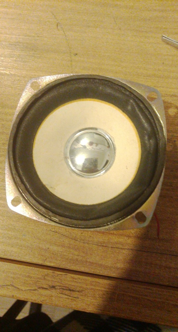 Parlak yüzeyli bej renk müzik sistemi hoparlörü, net ses için metal çerçeveli.