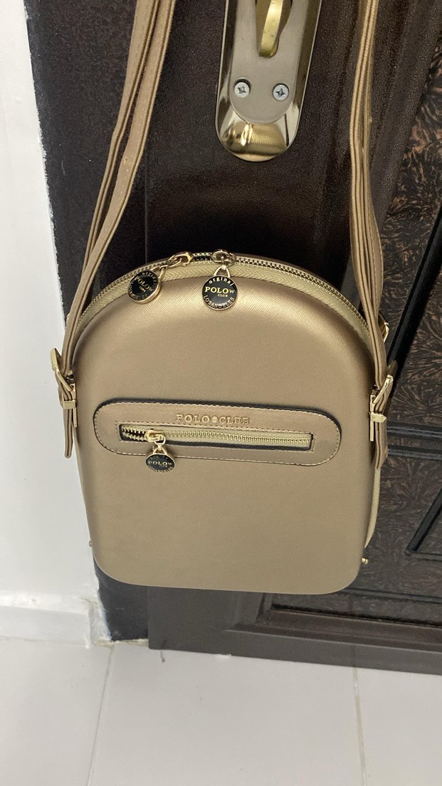 Bej parlak orijinal polo Fermuarlı Kadın Çantası