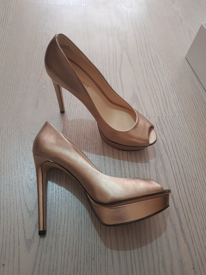 Bej renkli, parlak ve satenimsi dokulu platform topuklu kadın abiye ayakkabı. Ofis için uygun, desen içermeyen çağdaş ve klasik şıklıkta. Neredeyse hiç giyilmedi. Numarası arkada yazıyor 37 38 arası diye tahmin ediyorum. Ayakkabılıkta diğer ayakkabılar zedelemiş biraz fotoğraflarda mevcut.