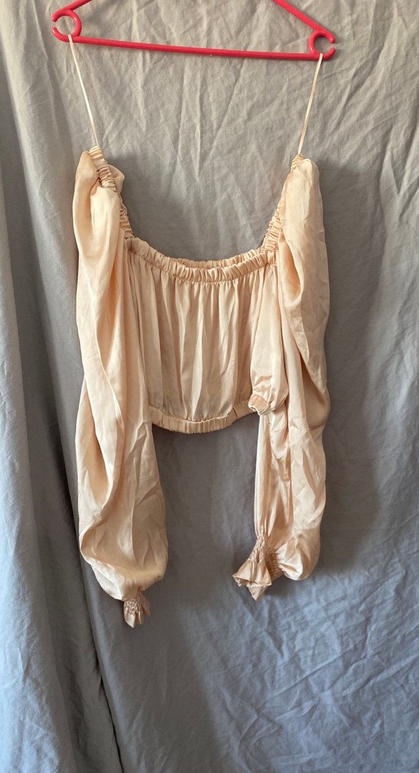Parlak bej renkli, ipeksi kumaştan, fırfırlı detaylı, normal boyda . Bohem tarzıyla düğün için uygundur. Defosunu çektim resimlerde var