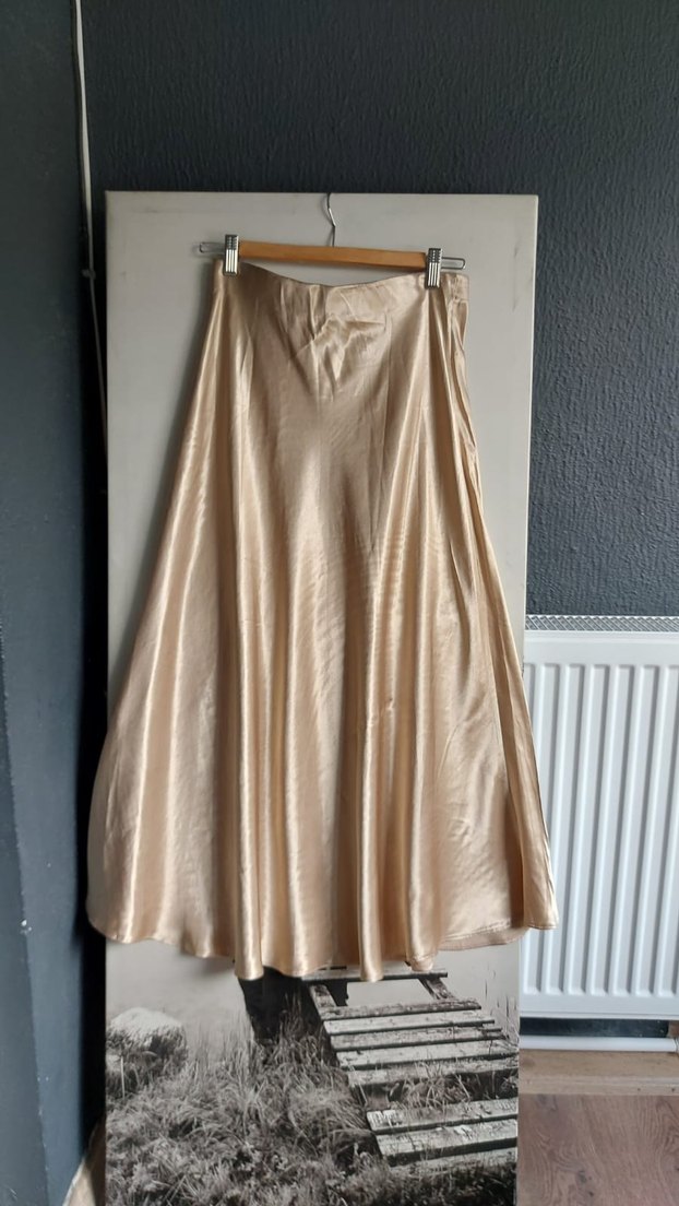 Bej Parlak Saten Uzun Etek