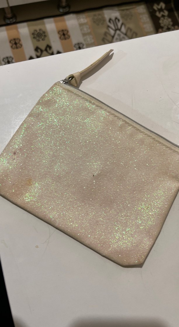 Bej renkte, simli yüzeye sahip, desen içermeyen deri portföy çanta. Minimalist ve günlük kullanıma uygun. ✨