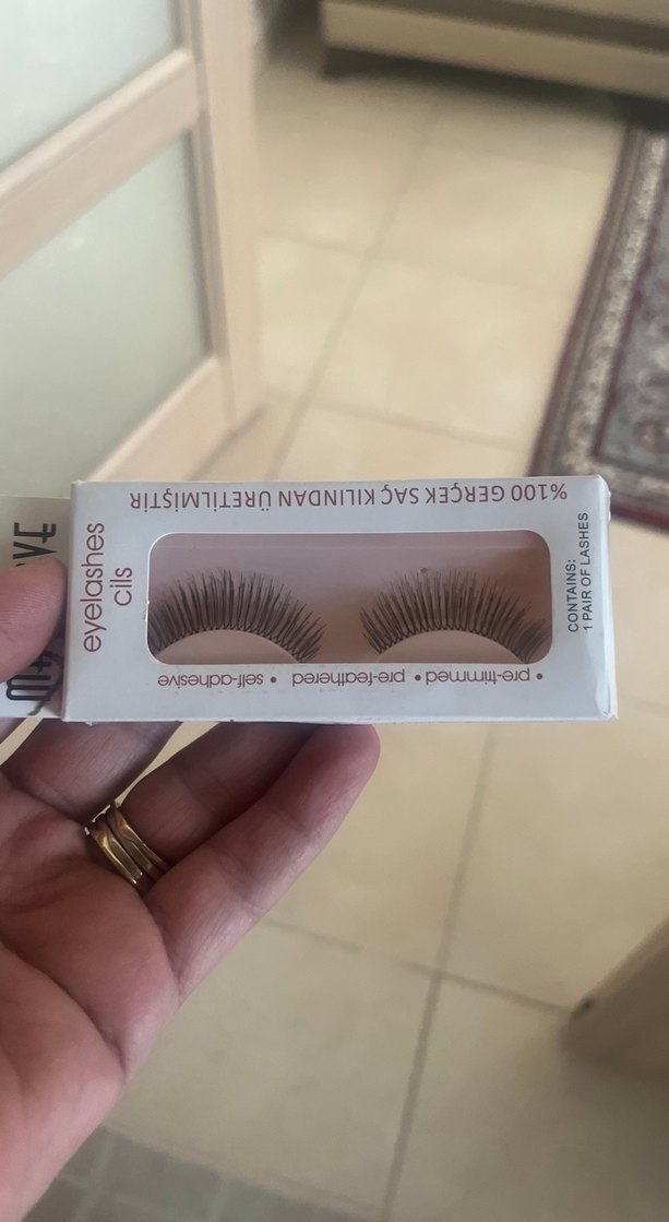 Bej renkli ve parlak görünümlü, önceden açılmış ve yarı yapışkan takma kirpik. İçinde bir çift bulunur. ️