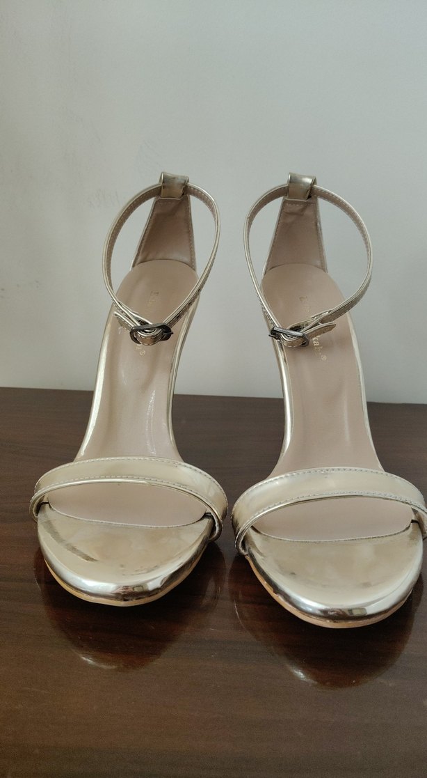 Bej parlak renkli, tokalı ince topuklu kadın ayakkabıları. Minimalist ve klasik şıklık için uygundur, romantik akşamlar için idealdir.