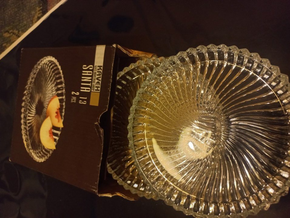 Soyut desenli, bej parlak vintage tarzda tabak seti. İki parçadan oluşur ve 'SANTA' markasını taşır. ️