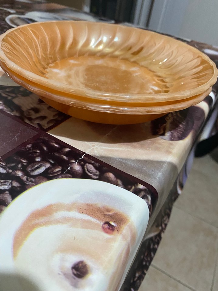 Parlak bej renkte, desenli yemek tabakları, yemek servisi için uygundur. ️
