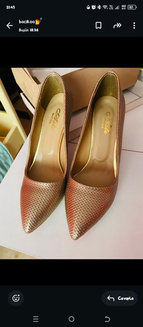 Bej renkli, parlak yılan desenli deri stilettolar, tokalı detaylı ve düğünler için uygun klasik şıklık sunar.