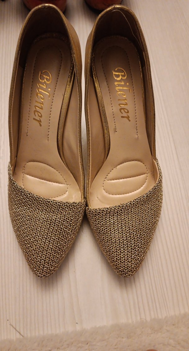 Bej parlak yılan desenli, tokalı ve kauçuk malzemeden yapılmış kadın stiletto topukludur. Düğünler için modern klasik ve gösterişli bir şıklık sunar. İçinde Bilener yazısı bulunur.