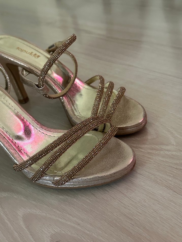 Bej Parlak Yılan Desenli Stiletto Topuklu Kadın Ayakkabı