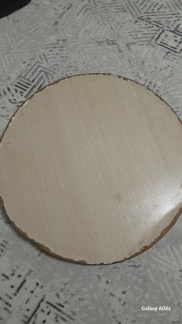 Parlak bej renkte, yuvarlak ve düz yüzeyli geleneksel tarzda tahta Desensiz ve sade tasarıma sahiptir. ️defolari mevcut kirik yok