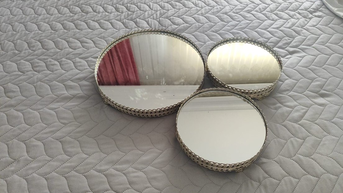 Dokulu kenar detaylarına sahip, parlak bej renk yuvarlak dekoratif aynalar seti, her mekâna yansıtıcı bir dokunuş katıyor .