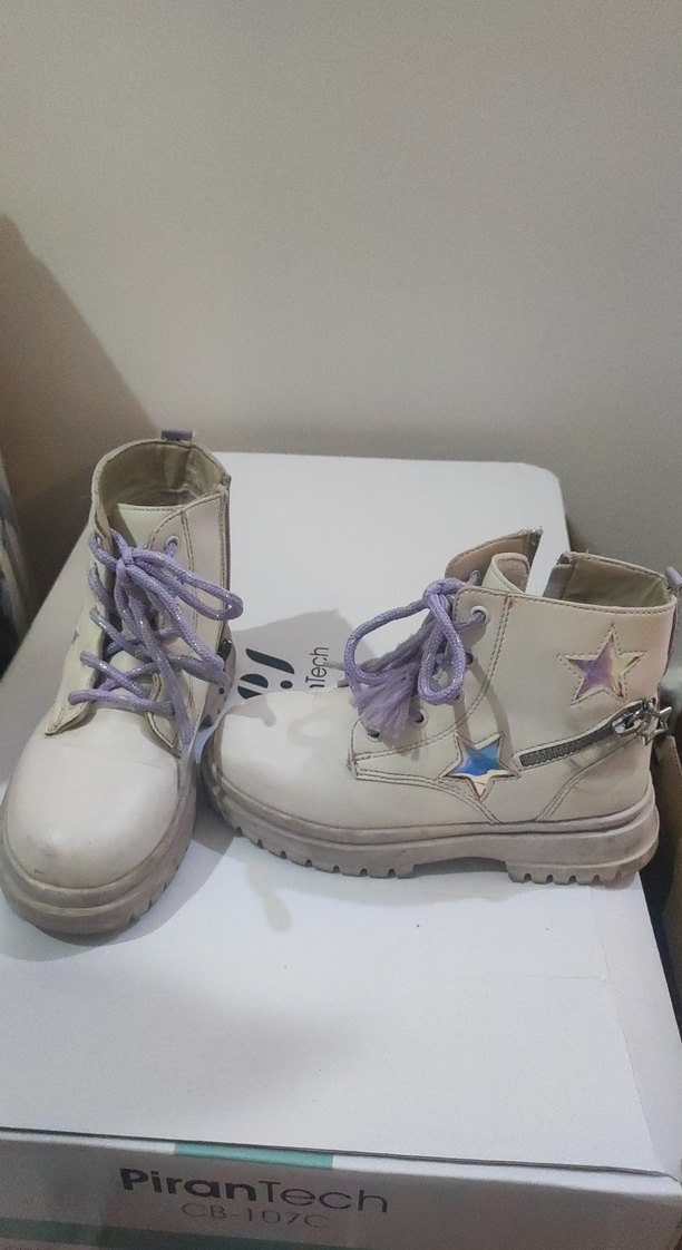 Bej pastel renkli, mor bağcıklı, lastik malzemeden kadın botları. Kemer detaylı ve sağlam tabanlıdır. ✨