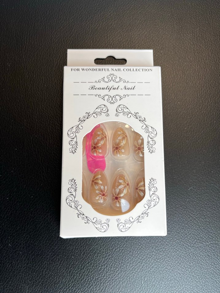 Bej pastel tonlarında, zarif çiçek desenlerine sahip tırnak süsleri, şık ve sade bir görünüm sağlar. 24 adet tırnak 24 adet yapıştırıcı bir adet Törpü