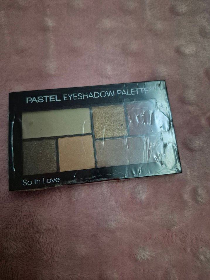 Bej tonlarında pastel göz farı paleti, yumuşak ve doğal makyaj için uygundur. Üzerinde 'So In Love' yazmaktadır.