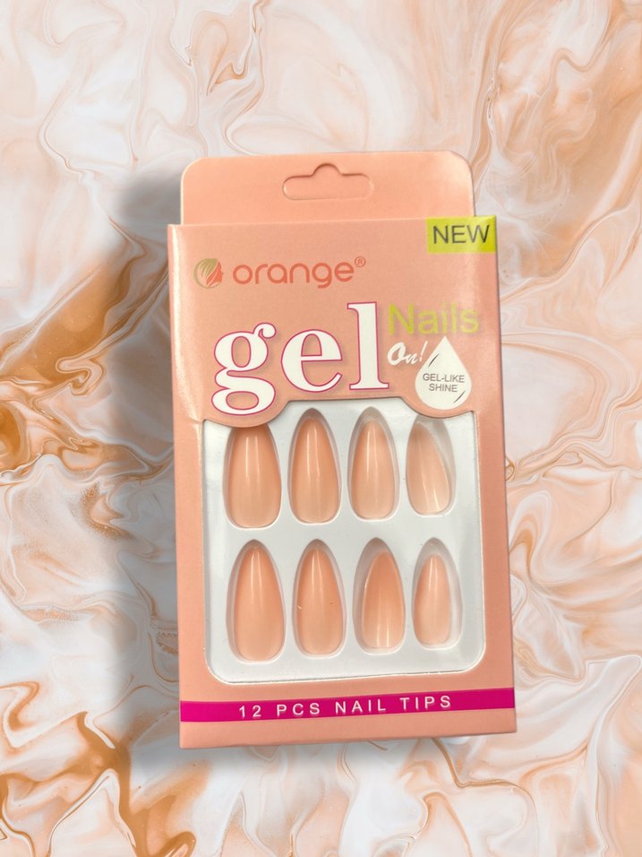 Bej pastel tonlarda, jel görünümlü ve parlak 12 adet tırnak ucu seti. Doğal bir görünüm sağlar.