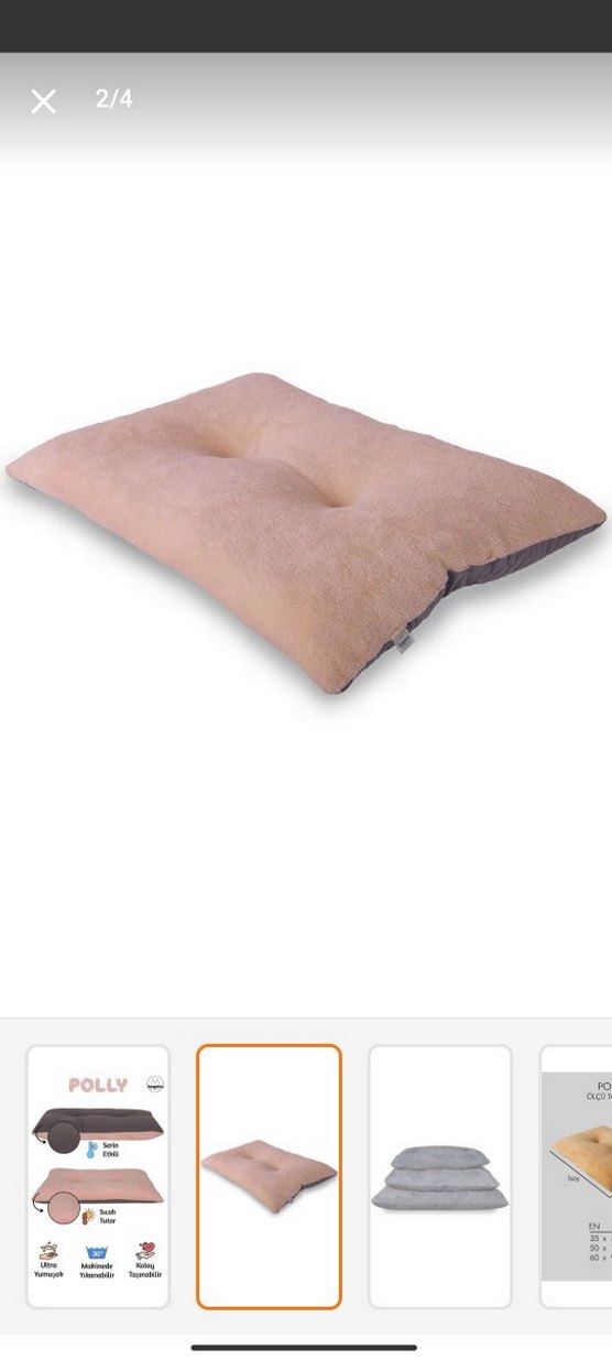 Yumuşak dokulu, ortasında iki çukur bulunan bej pastel renkte kedi yatağı.Rahat bir dinlenme yüzeyi sunar. ️