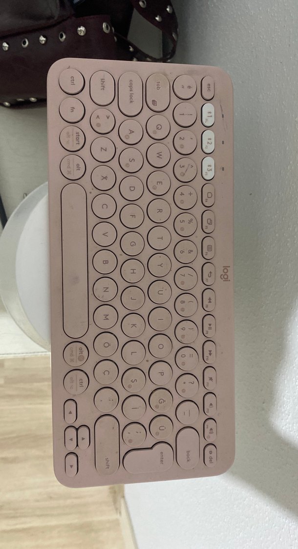 Logitech marka bej pastel renkli, yuvarlak tuşlara sahip kablosuz klavye. Kompakt tasarımı ile rahat yazım sağlar.