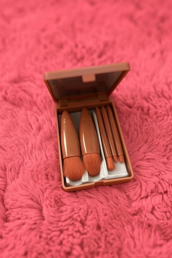 Bej pastel tonlarda, farklı boyutlarda fırçalardan oluşan makyaj seti. Yumuşak kıllarıyla çeşitli makyaj uygulamaları için uygundur.