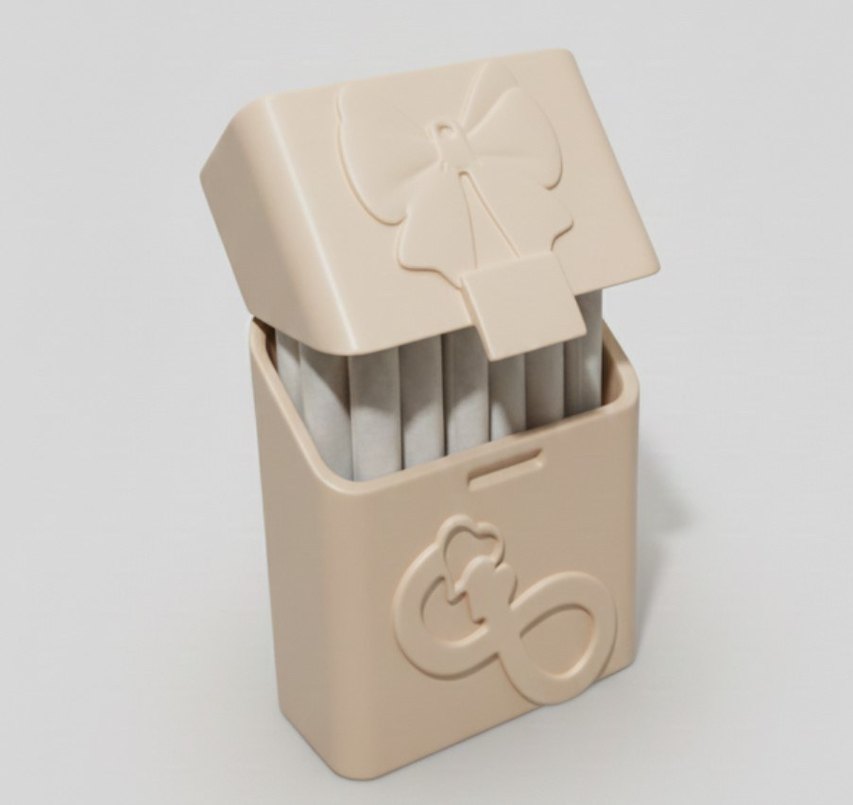 Kapağında fiyonk detayı bulunan bej pastel renk makyaj organizer kutusu, kozmetik ürünler için kompakt depolama sunar.