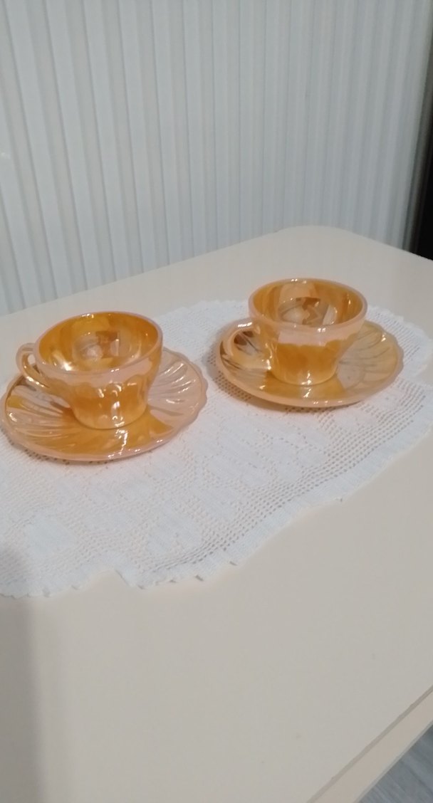 İki adet bej pastel renkli fincan ve uyumlu tabaklardan oluşan, parlak ve pürüzsüz yüzeye sahip set. ☕