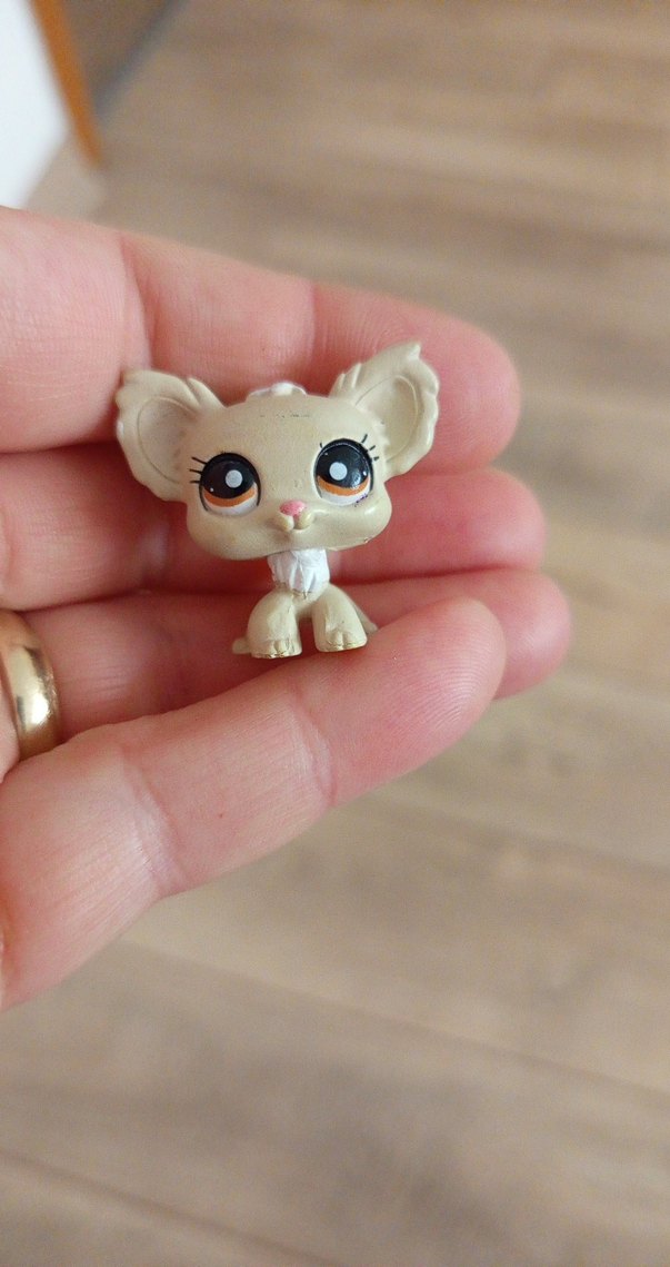Büyük gözlü ve sevimli ifadeye sahip bej pastel renk tonlarında küçük bir figür. Koleksiyon veya oyun için uygun.