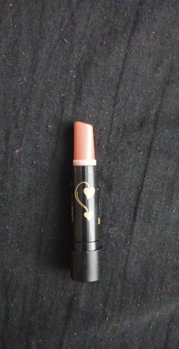 Siyah tüpte, kalp desenli bej pastel ruj. Doğal görünüm için yumuşak renk sağlar. İçerisinde hafif simler var.