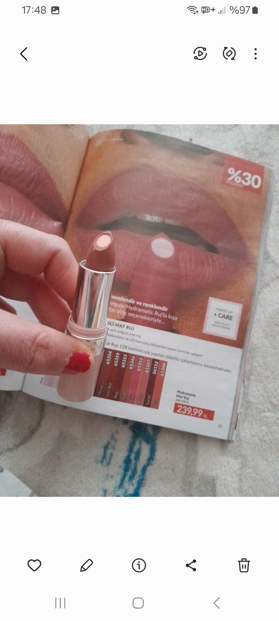 Nemlendirici etkisi olan bej pastel renkte mat ruj. 2025 uretim tarihli olup jelatinsizdir