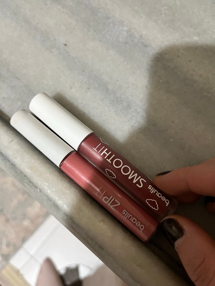 İki adet pastel bej tonlarında, pürüzsüz sürüm sağlayan ruj seti.