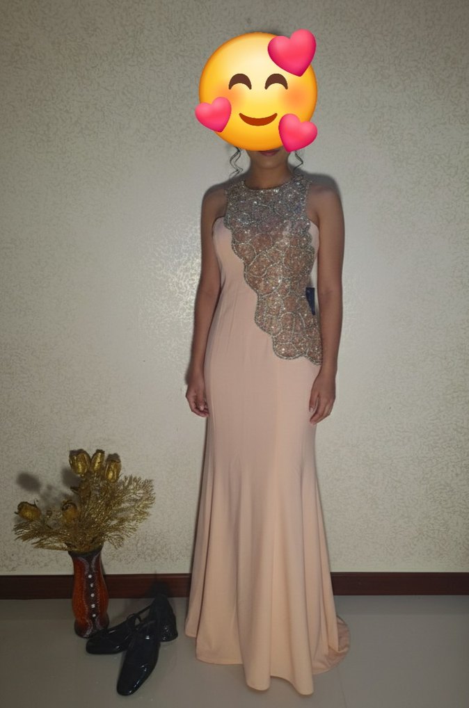 ETIKET FIYATI 4750 DIR INDIRIM YAPILIR.Uzun, bej renkli, dar kesim ve kolsuz olan bu abiye elbise, straplez yaka ve payet işlemeli desen detaylarına sahiptir. ✨