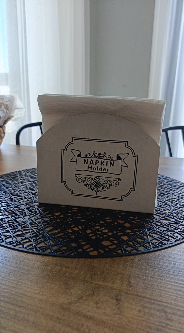 Bej renkte, koyu detaylara sahip peçete tutucu. Masanızda peçeteleri düzenli tutmak için kullanılır. ️