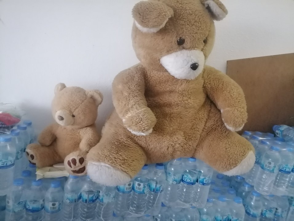 Pastel tonlarda, yumuşak dokulu bej peluş ayıcık oyuncak, sarılmak ve oyun için uygundur.