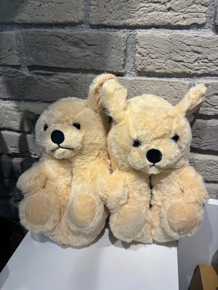 Pastel tonlarda, yumuşak dokulu bej peluş ayıcık ve tavşan Ev panduf