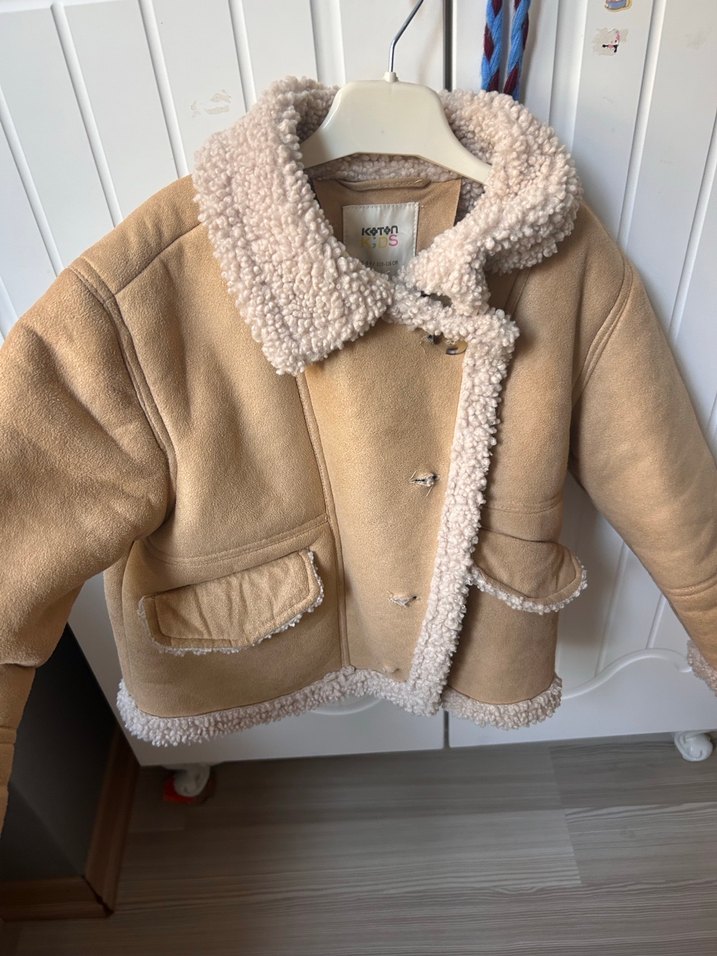 Bej renkli, peluş detaylı, bol kesim kadın ceket. Yaka, manşet ve etek kısmında kürk detayları bulunur. Uzun kollu ve günlük kullanım için uygundur. 4-5-6 yasa uyumludur koton marka ufak sorunu var cektım onuda sorun teskıl etmedı gıydırdım ben