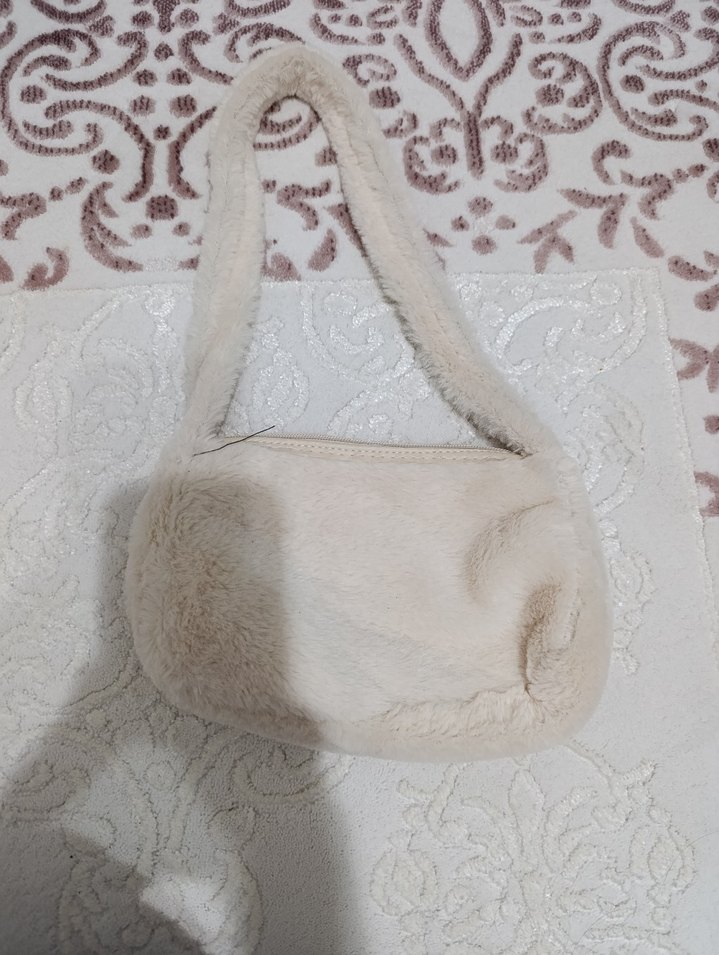 Bej Peluş Detaylı Kadın Çanta