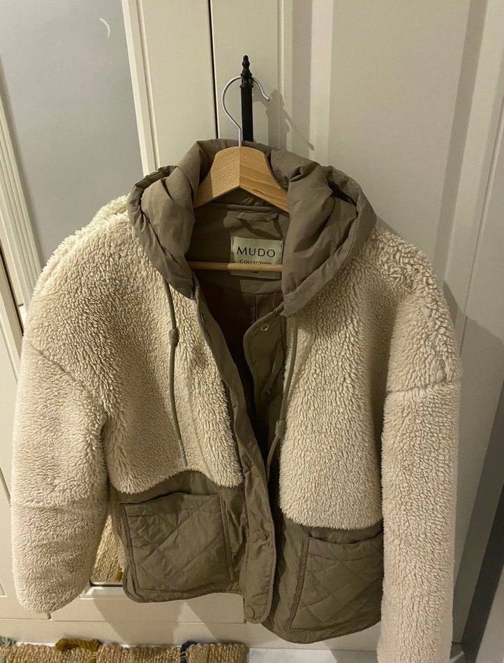 S beden ama M L bedene de olur Oversize geniş kalıp kilo verdiğim için bol oluyor kullanmıyorum rengi;bej kürklü haki şapka ve cepli.kuru temizleme yapılmadı bir de iç astar da sökük var fiyata yansıttım✨