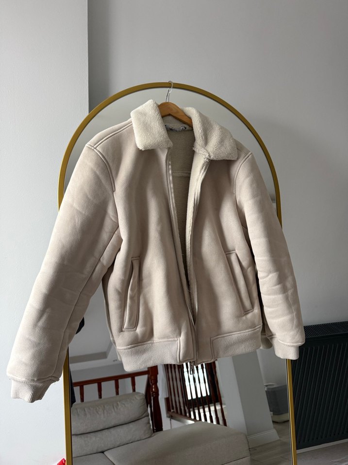 Bej renkli, peluş detaylı kadın ceketi, uzun kollu ve kesik yaka ile. Salaş kesimi ve midi boyu ile rahat sokak stili sunar. Günlük kullanıma uygundur.