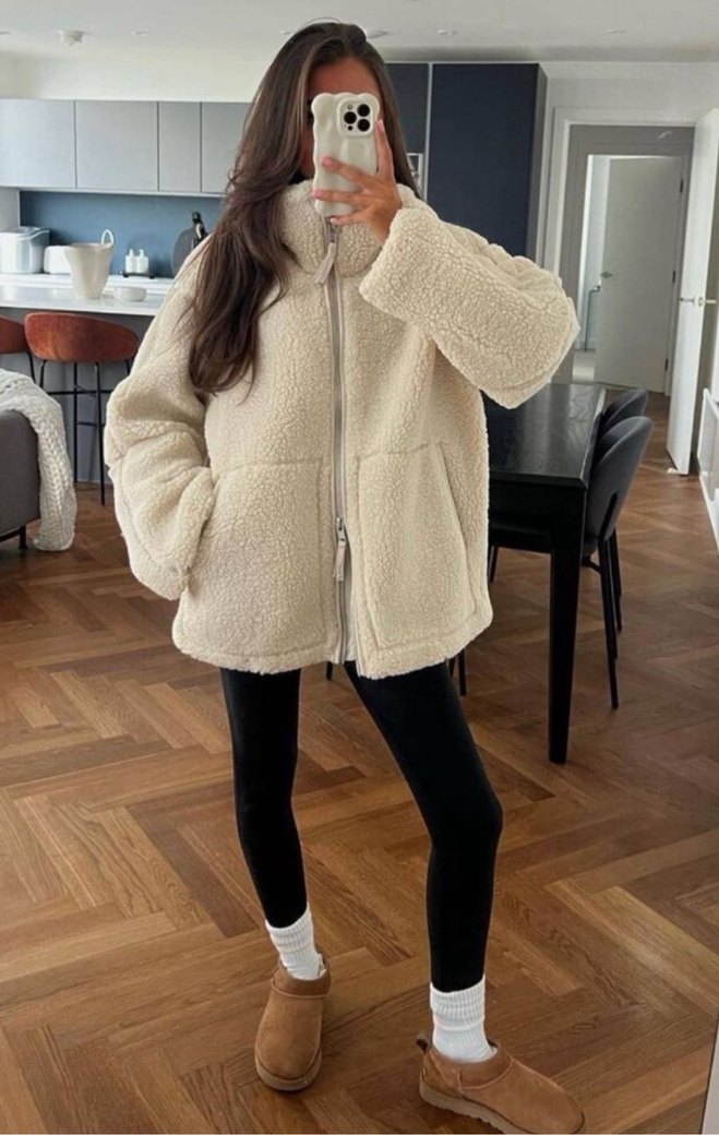 S ve L bedenler kaldı yalnızca. Bej renkte, peluş kumaştan yapılmış, bol kesim ve yüksek yakalı kadın midi mont. Uzun kollu ve kürk detaylarıyla rahat ve sıcak tutar.