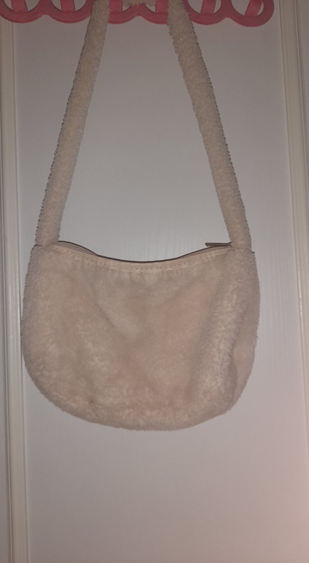 Bej renkli, peluş kumaştan yapılmış, kürk detaylı, desen içermeyen kadın omuz çantasıdır. Rahat ve günlük kullanıma uygundur.