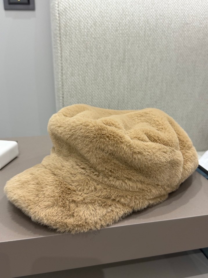 Bej renkte, peluş kumaştan yapılmış kadın şapkası. Sıcak ve rahat bir dokunuş sunar, basic ve sokak stiline uygundur.