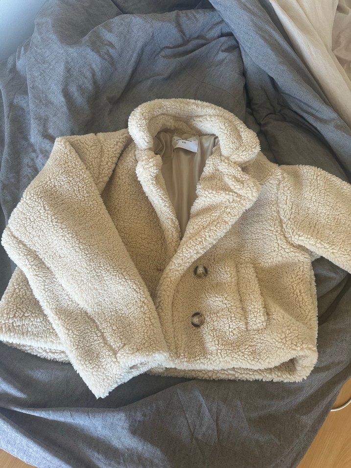 Bej renkli, kürk detaylı yumuşak peluş kumaştan kısa ceket. Sıcak tutuyor s-M uyumlu