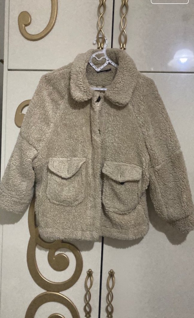 Yumuşak ve sıcak kumaşlı, kürk detaylı kısa bej mont. Uzun kollu, kesik yaka ve iki ön cepli, bol kesim rahat sokak stili. Günlük kullanım için uygun.