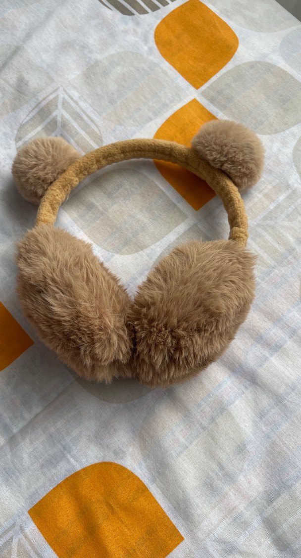Yumuşak peluş malzemeyle kaplı bej kulaklık sayılı taktım hiçbir sorunu yoktur